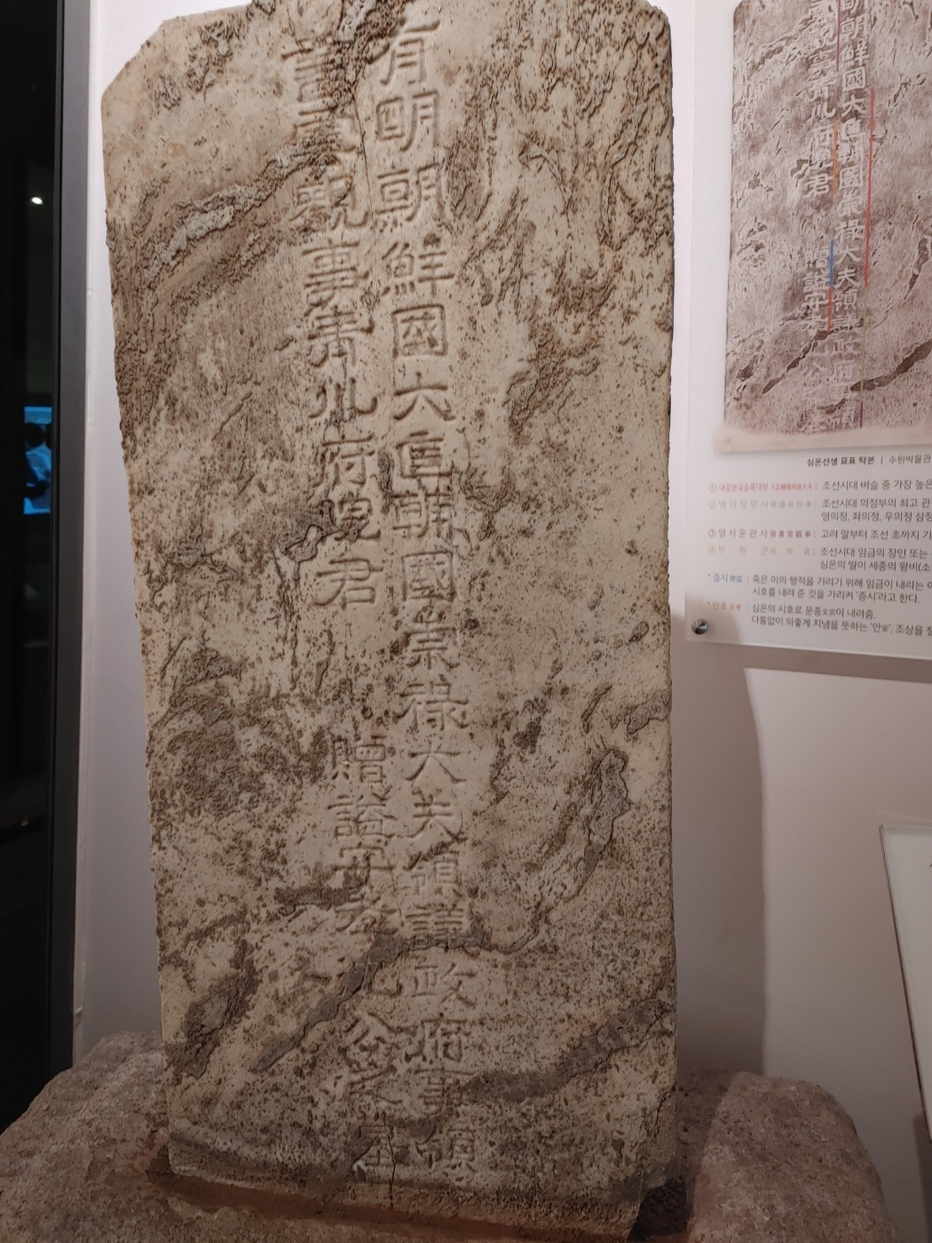심온선생묘포(묘비)는 외부에 있던 것을 보존을 위해 박물관으로 옮겨 왔는데